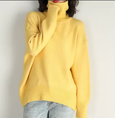Pull d’hiver à col roulé, couleur unie, manches longues, haut à enfiler pour femme.